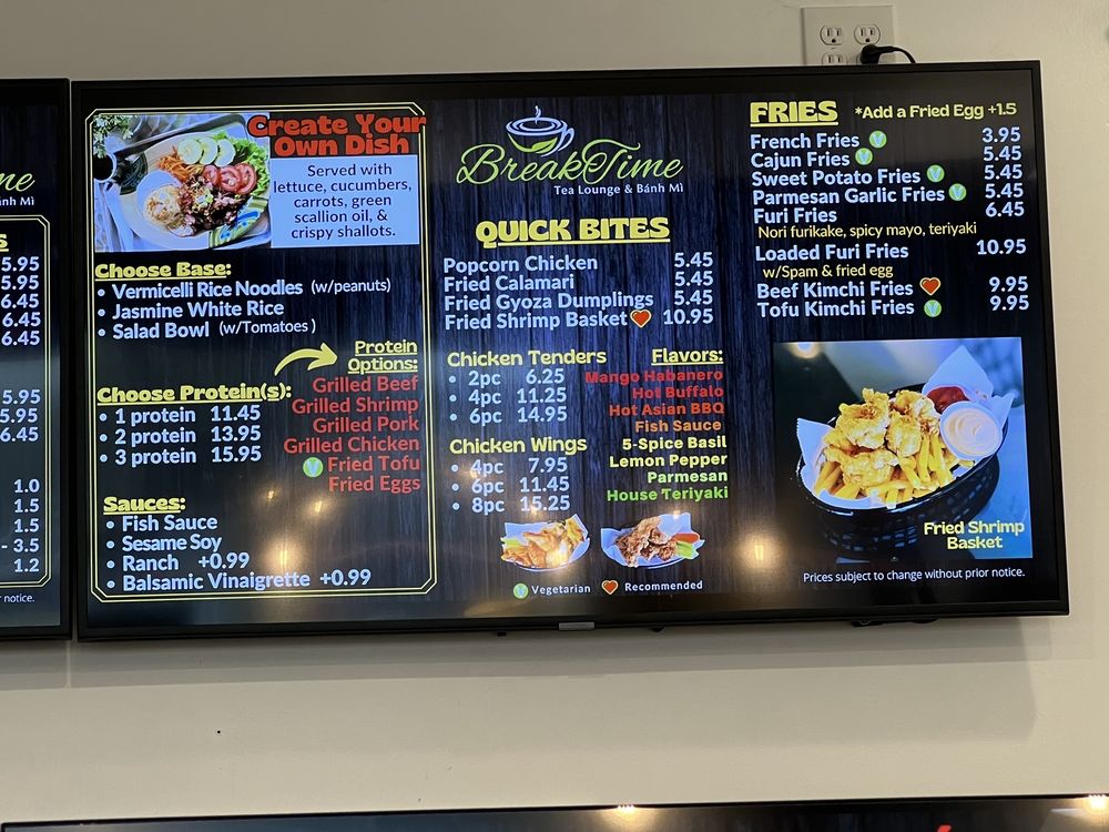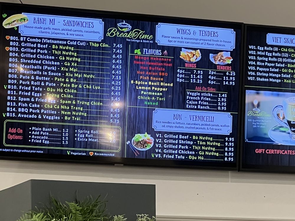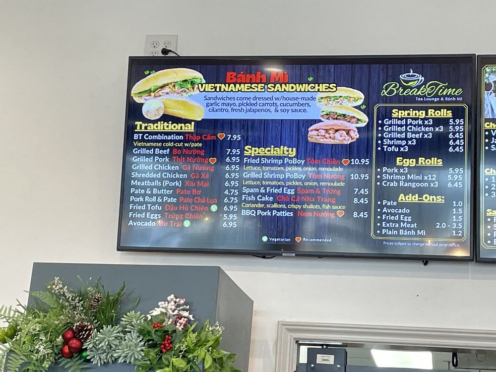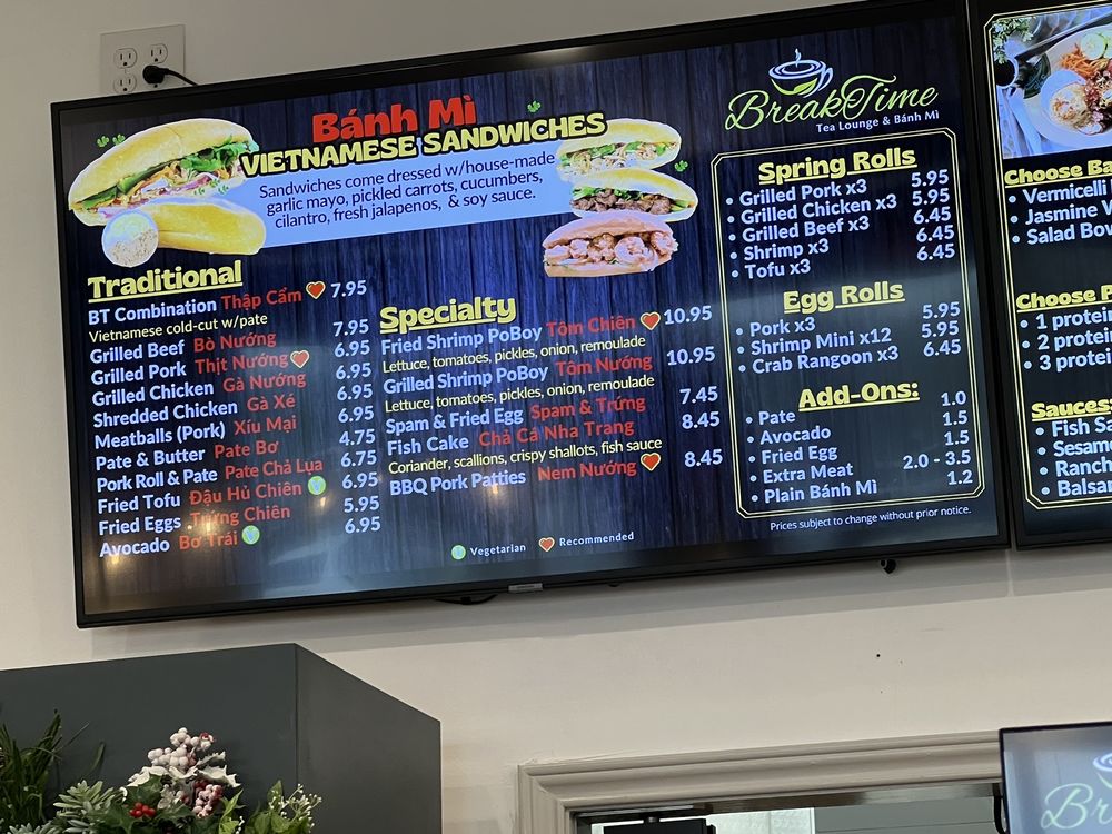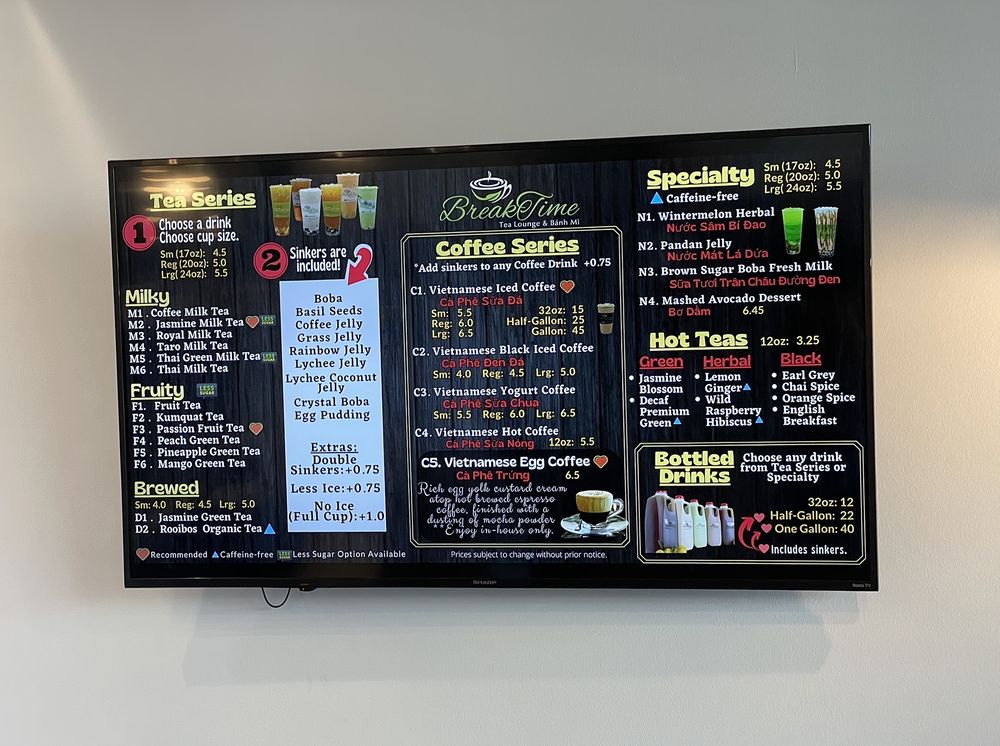 Breaktime Tea Lounge & Bánh Mì Menu